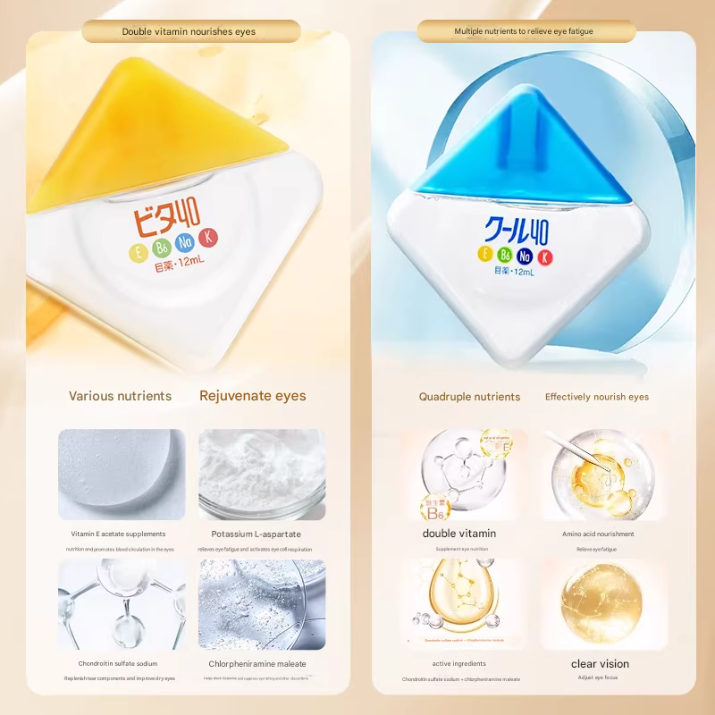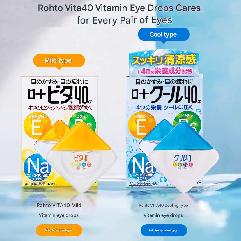 🌟 Rohto Vita40 Vitamin Eye Drops သည် မျက်စိပင်ပန်းမှု၊ မျက်စိနီခြင်း၊ မျက်စိယားယမ်းခြင်းများကို သက်သာစေပြီး မျက်စိကို နေ့စဉ် nourish လုပ်ပေးနိုင်သော ဗီတာမင်များပါဝင်သည်။