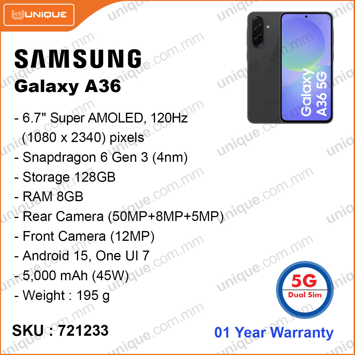 SAMSUNG Galaxy A36 5G 8GB, 128GB