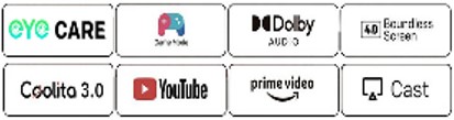 • Other function - DVB-T/T2, Dobly Audio, Boundless Screen 4.0, Game Mood, Coolita 3.0(Smart TV), EYE Care, YouTube, Prime Video, Cast, Browser Build In