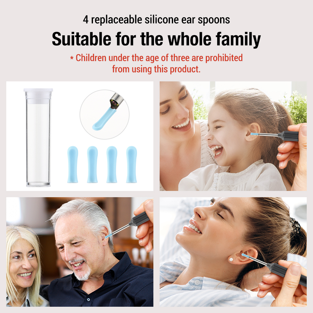 The four replaceable food-grade silicone ear spoons are soft and skin-friendly and do not hurt the ear canal. They are suitable for the whole family to avoid cross-infection.