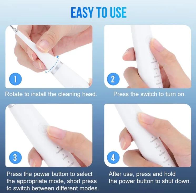 How to use: First, apply the tool to a small area several times and wait until you get a feel for it. Then gradually increase the intensity to find the level that works best for you.