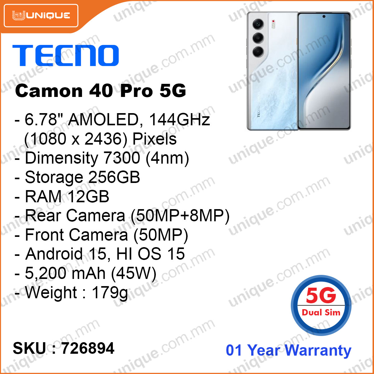 TECNO CAMON 40 Pro CM7 5G 12GB, 256GB