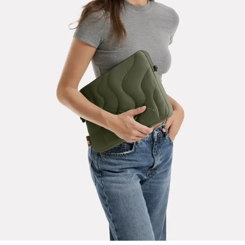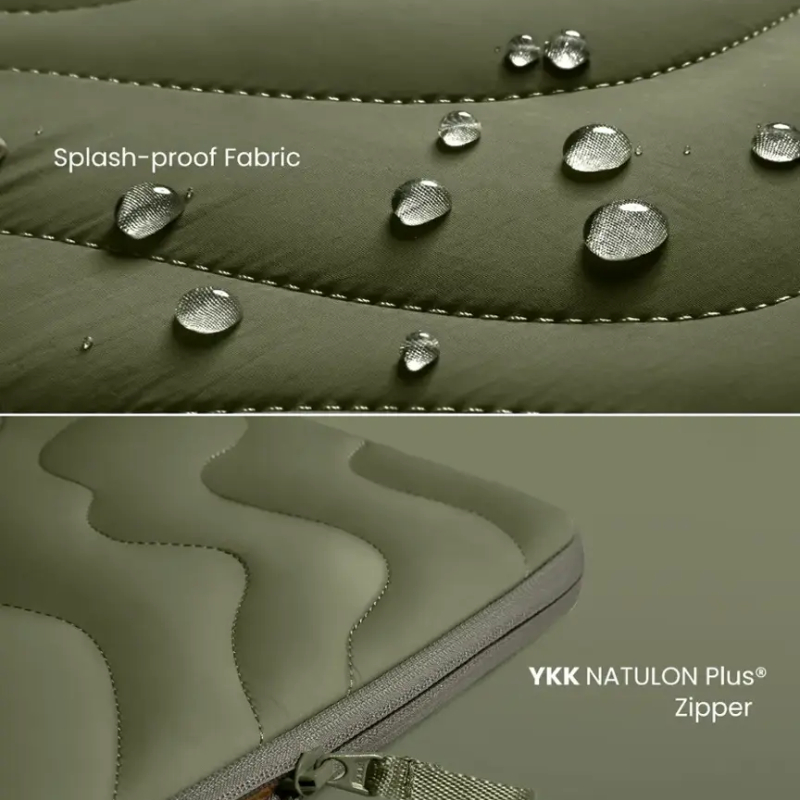 The Terra-A27 Laptop Sleeve features a design inspired by nature's landscapes, blending elegance with eco-consciousness in a puffer style, ideal for MacBook users who appreciate the Earth's beauty.
