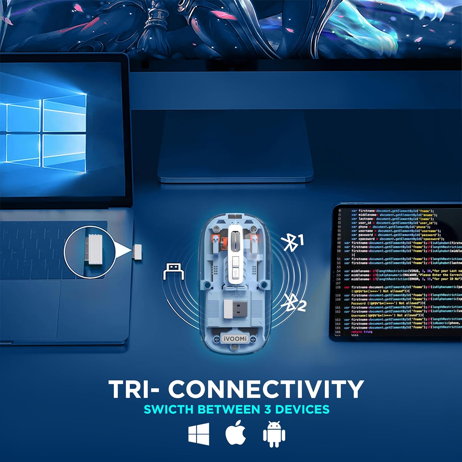 Transparent Tri‑Mode Mouse – Quiet, Fast, Smart ✨🖱️