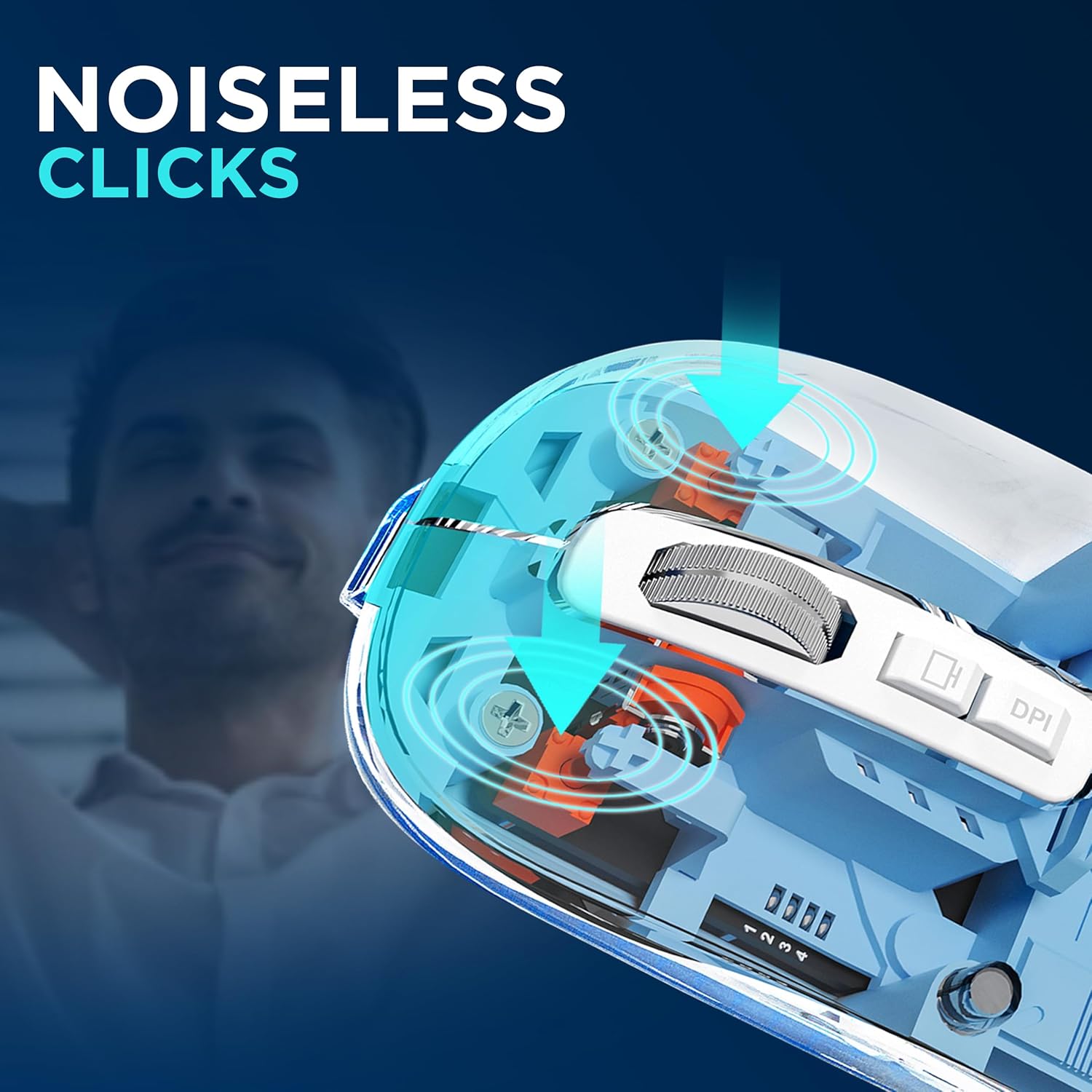 🔇 | Transparent ကိုယ်ထည် Ergonomic ဒီဇိုင်း၊ left/right Quiet Clicks၊ လက်ညာ/လက်ဝဲ နှစ်မျိုးလုံး သင့်တော် 🔇