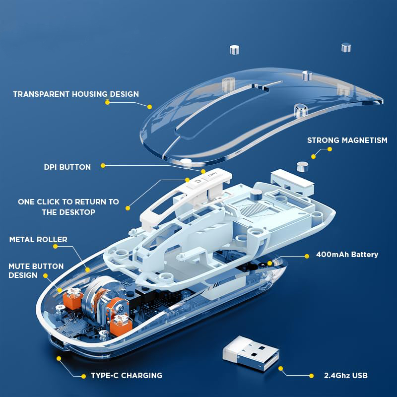 #TransparentMouse #TriMode #BluetoothMouse #2_4GWireless #TypeCCharging #SilentClick #AdjustableDPI #ErgonomicDesign #PortableMouse #SevenColorLight #BatteryIndicator #MyanmarShop
