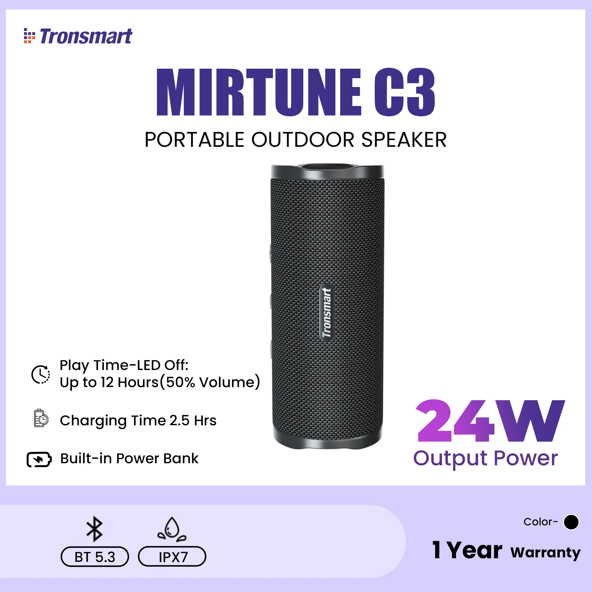 TRONSMART - Mirtune C3 Portable Bluetooth Wireless Outdoor Speaker