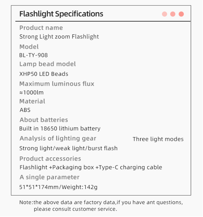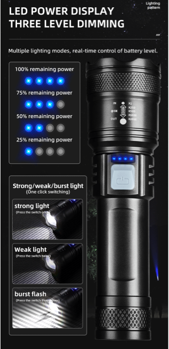 #UpgradenTY908 #LEDFlashlight #OutdoorGear #CampingLight #NightFishing #AdventureTools #PortableFlashlight #StrongLighting #ZoomFunction #USBCharger