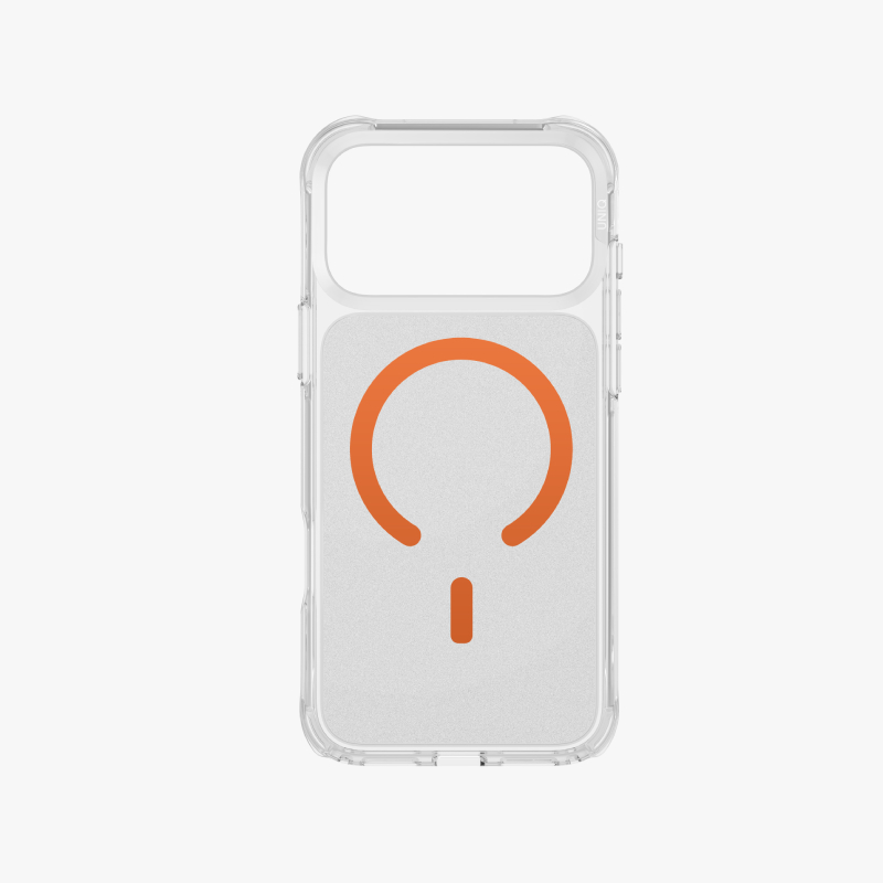 Brand : Uniq Model : iPhone 17 Pro Max Color : Frost Clear/Volt Orange