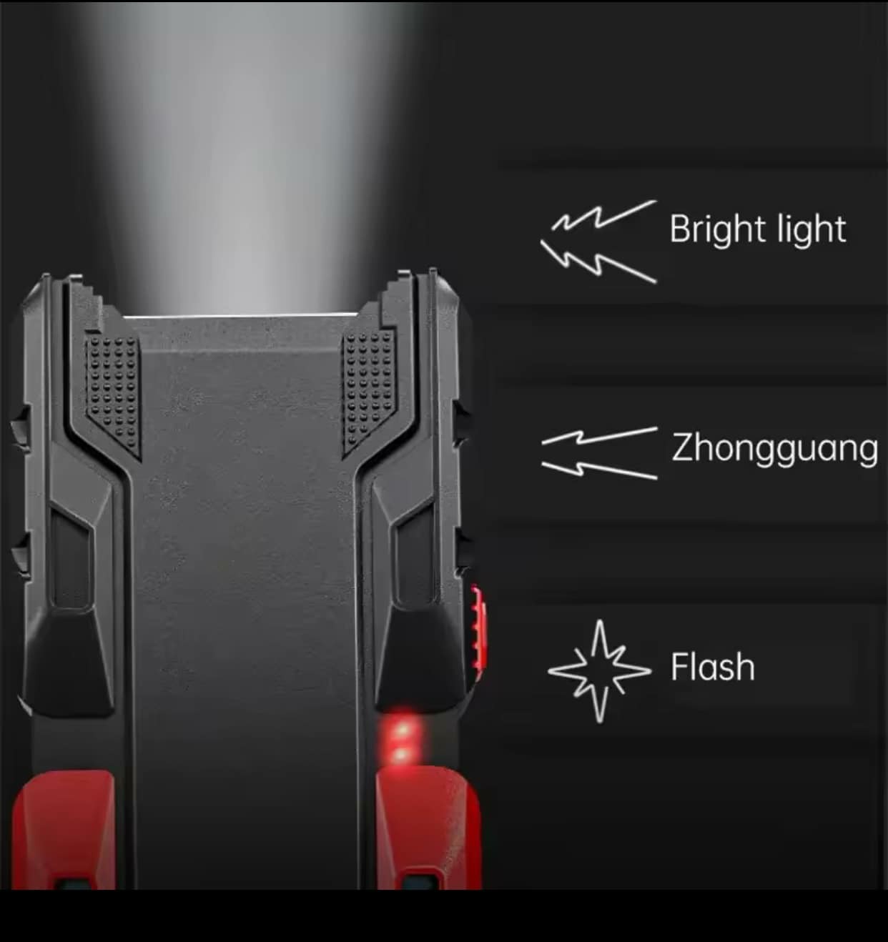 Working mode: 3 lighting modes: low light - strong light - flash