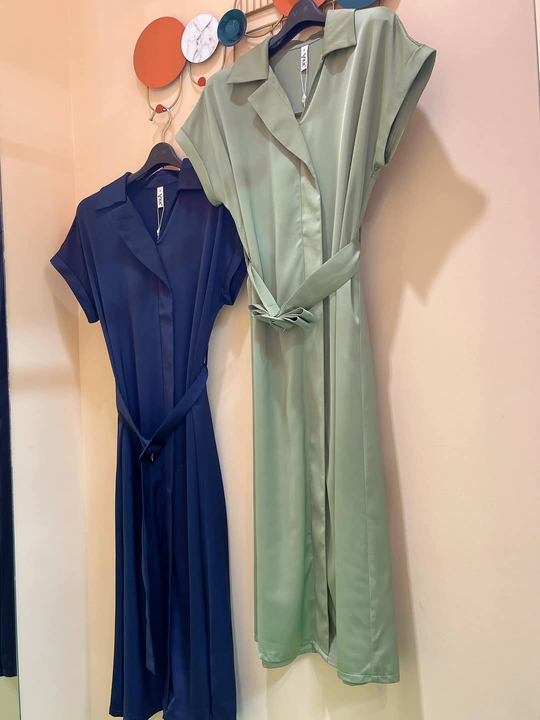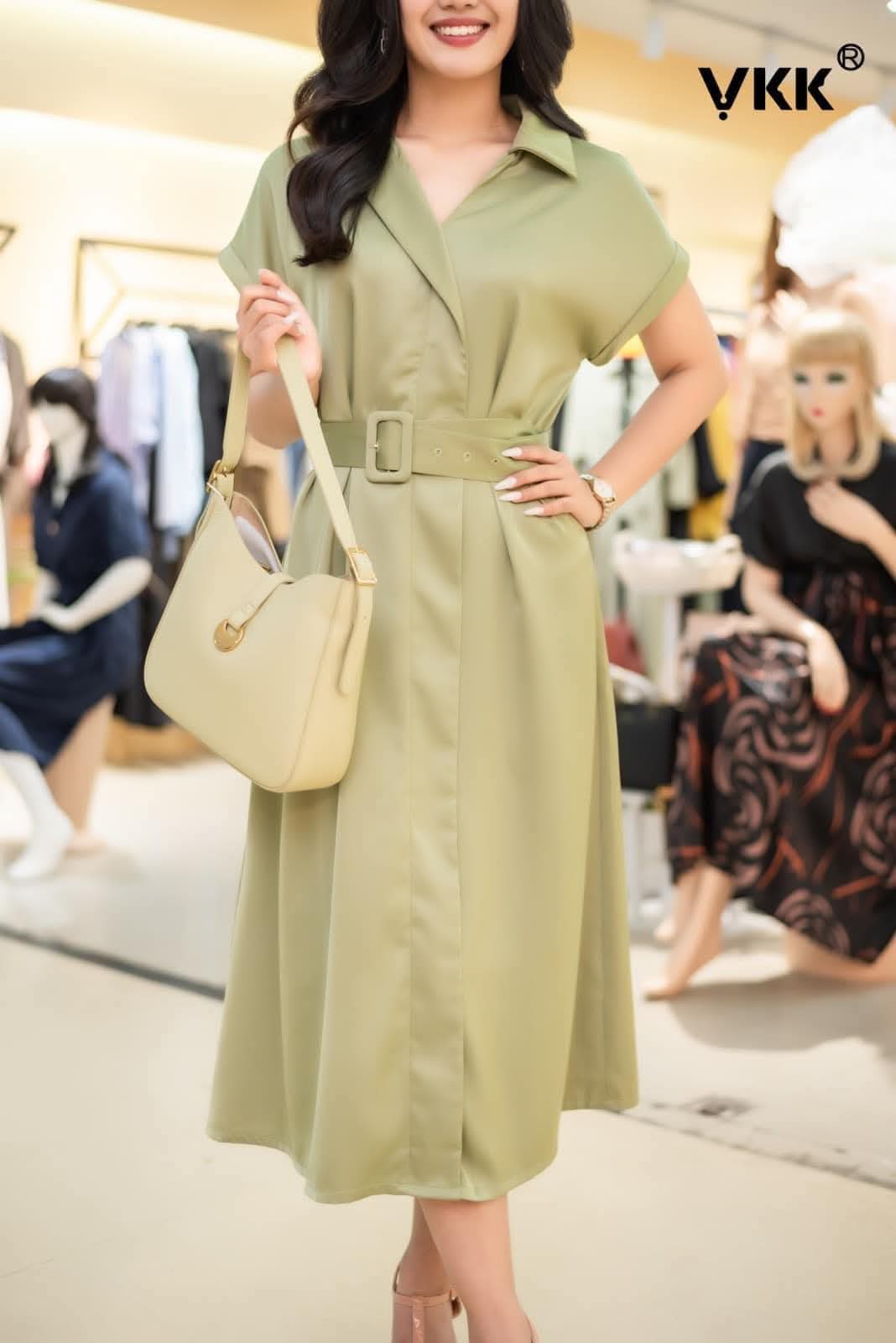 Design : V-neck collar, waist belt ပါဝင်ပြီး Figure flattering